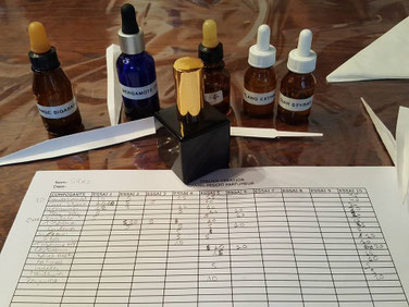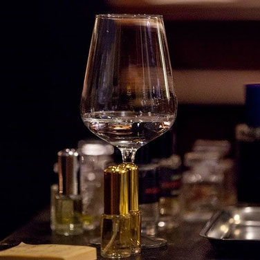 En découvrant d’abord au nez et en bouche les arômes présents dans la dégustation de plusieurs vins. Puis en les guidant vers la correspondance de ces aromes sur des matières premières de la parfumerie, pour définir le parfum à sentir, en lien avec le vin dégusté. Un voyage sensoriel pour leur apprendre l’art de déguster, au nez et en bouche le vin, tout en apprenant à sentir en découvrant l’univers du parfum.